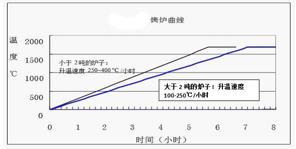熔煉爐在烤爐前要裝滿緊實的爐料,按下列升溫速度升溫:對于大于 2 噸的爐子,升溫速度為100~250°C/每小時;而小于2噸的爐子,升溫速度為 250~400°C/每小時。